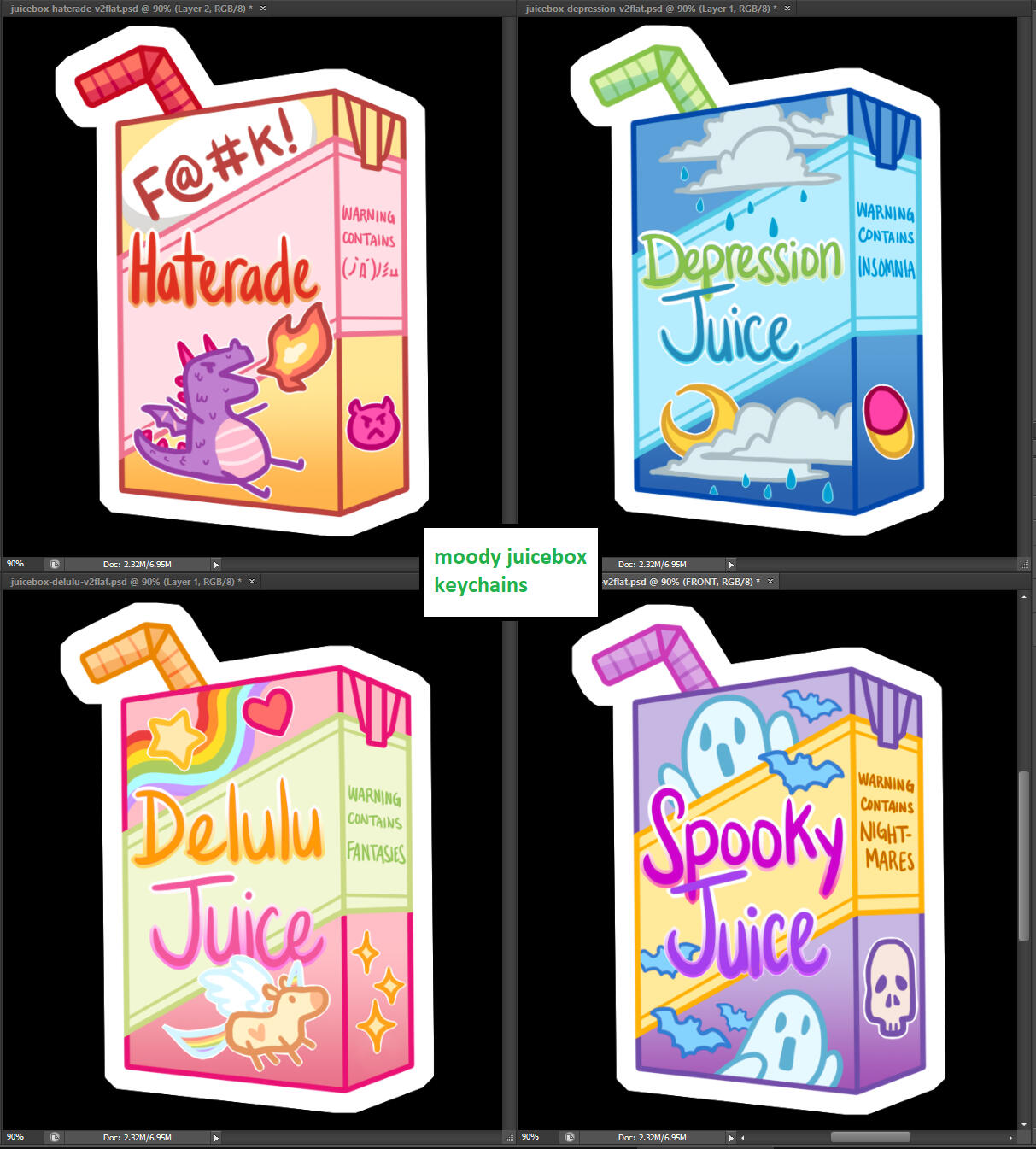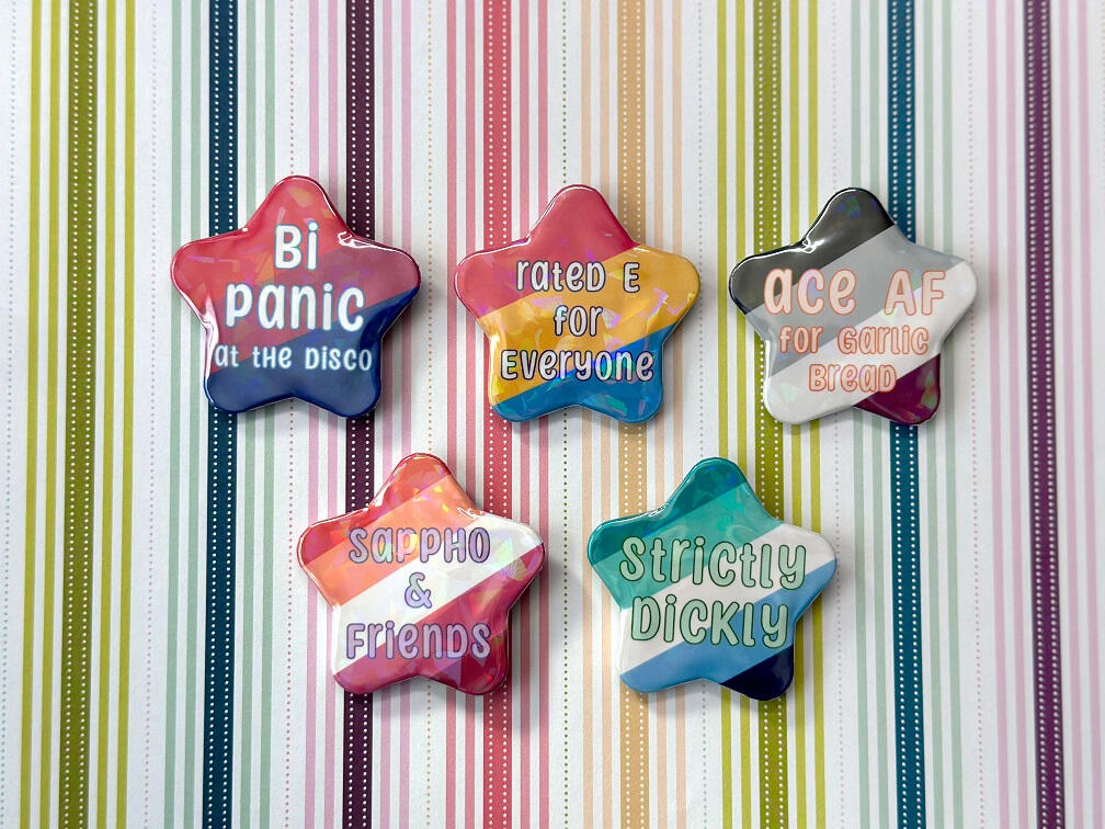 art prints, stickers, keychains, buttons